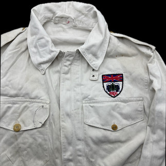 The suits were produced in a myriad of styles including a standard turn-down collar, mandarin style stand-collar, and had different pocket designs depending on the manufacturer. They were manufactured in 2 different weights and four colours: white, black, navy and tan. Rank lace was sometimes attached to the epaulettes and squadron badges and pilot wings were occasionally added, though an Air Ministry order forbade the application of badges in the war years. Photo evidence would suggest this was not always heeded to.